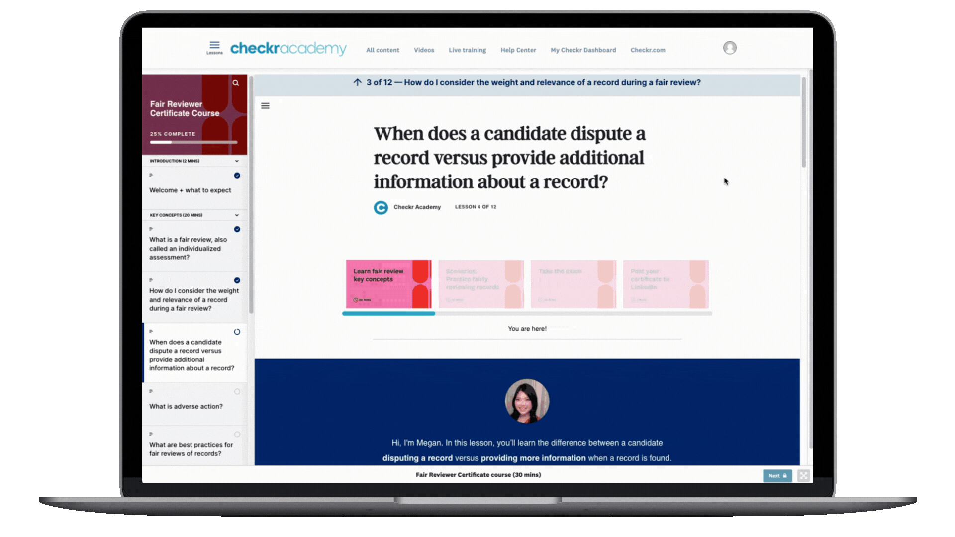 Checkr users need to know how to use Checkr’s technology, along with how to make compliant and productive hiring decisions.
